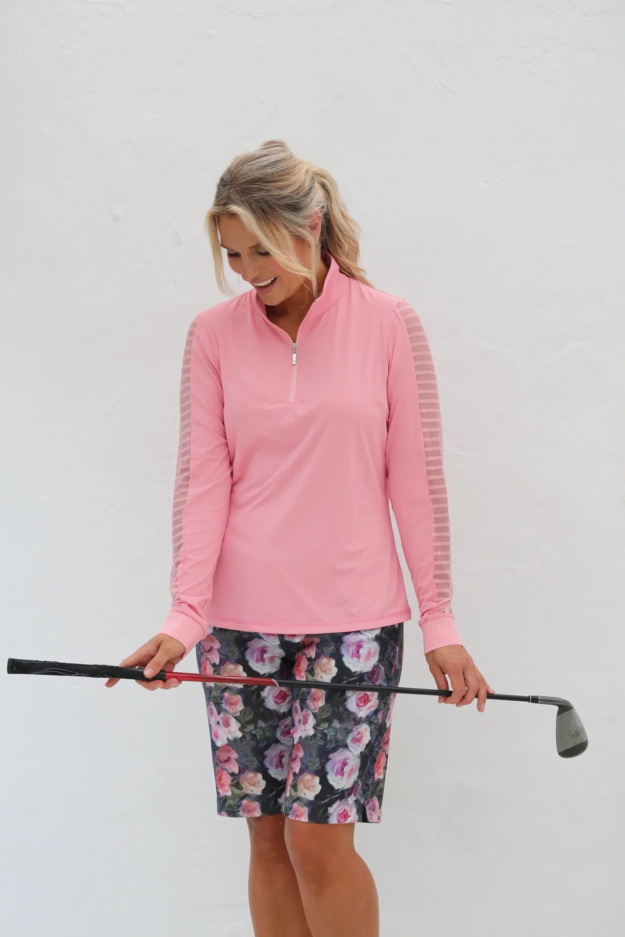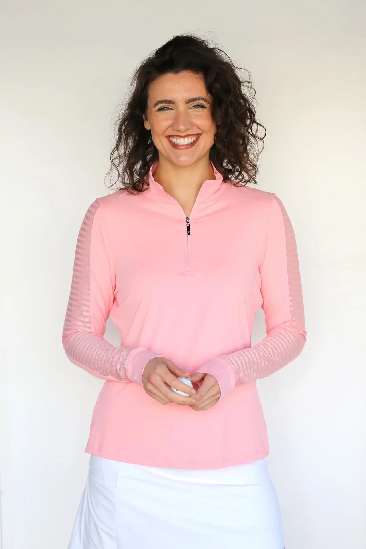 There is a fabulous ladder mesh detail up the sleeve and over the shoulder to the collar which provides a sculpted definition to the arms and shoulders. It makes this top stand out and adds a touch of glamour and luxury but then again it's practical both for warmth and for keeping the sun rays at bay!