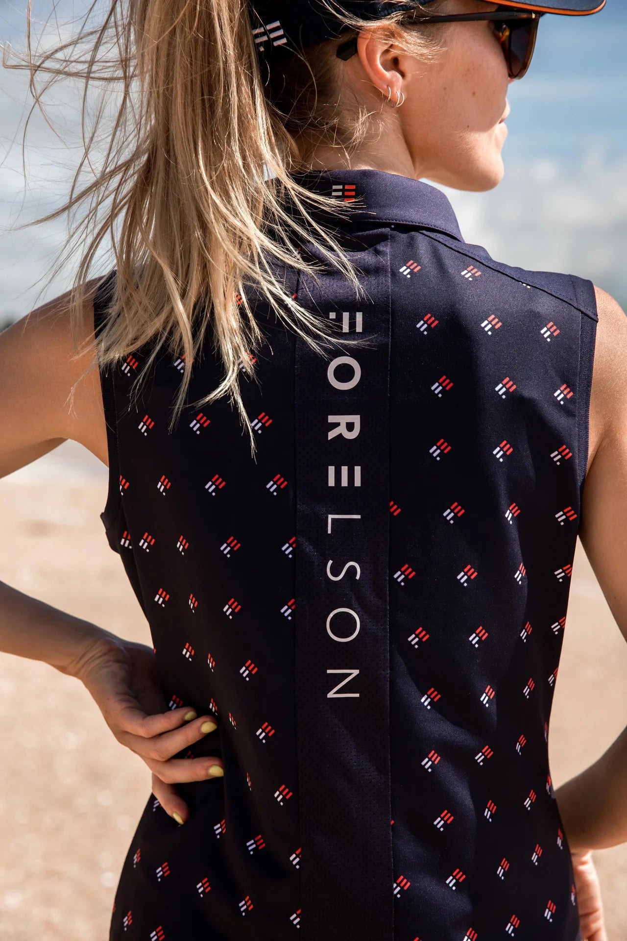 Introducing the Forelson Buckland sleeveless top - Navy, the perfect blend of style and functionality. Made with wicking fabric and UPF50 sun protection, this top keeps you cool and comfortable all day. Its playful sleeveless design is perfect for warmer days and its true-to-size fit ensures unrestricted movement.