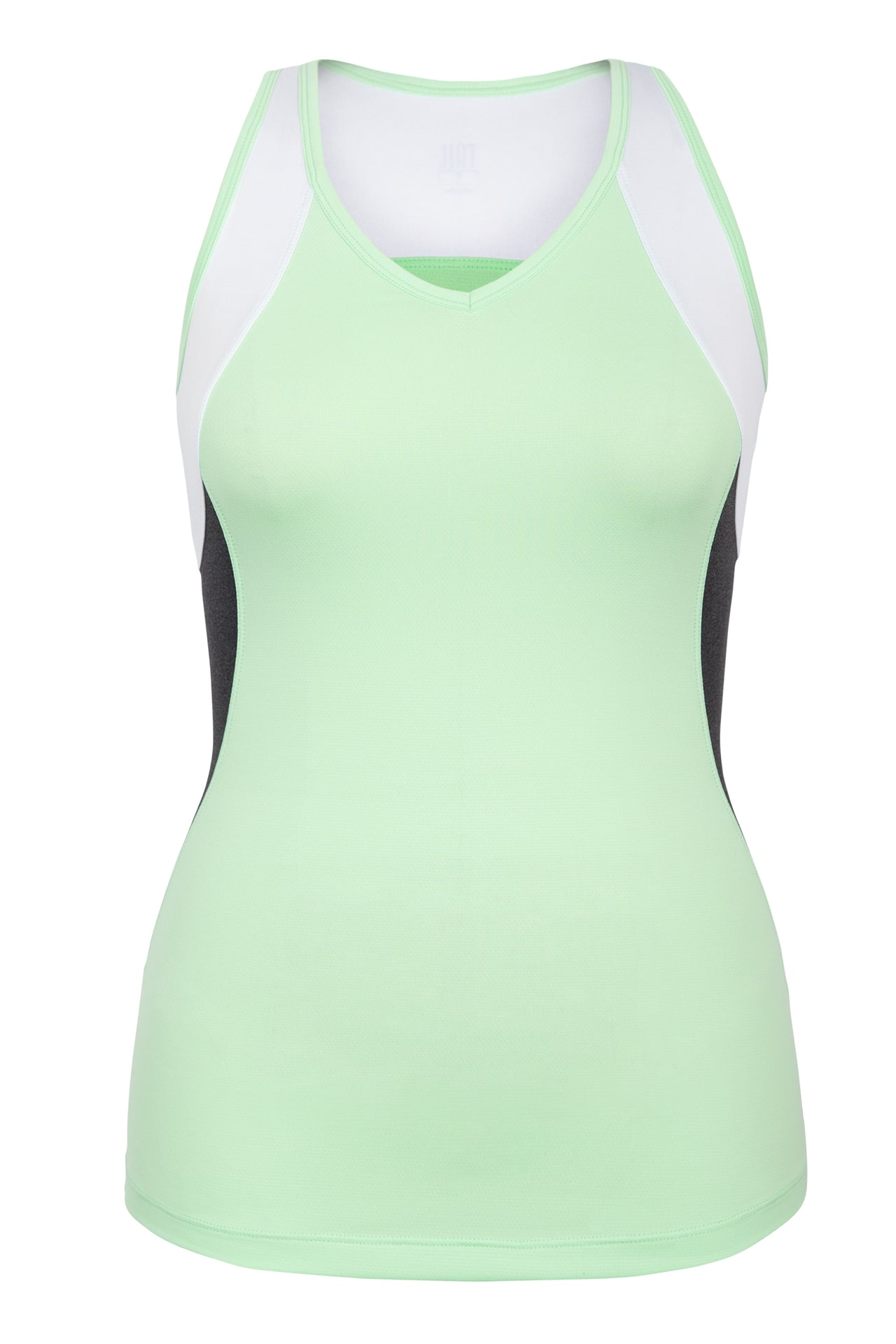 Look stylish and feel comfortable in this Judy tank with its V neck and flattering colourblocking. The modest, broad racerback gives comfort and good movement which the technical fabric gives sun protection but manages moisture to keep you dry. The pinhole mesh fabric on the front and back panel helps keep this top feeling cool.