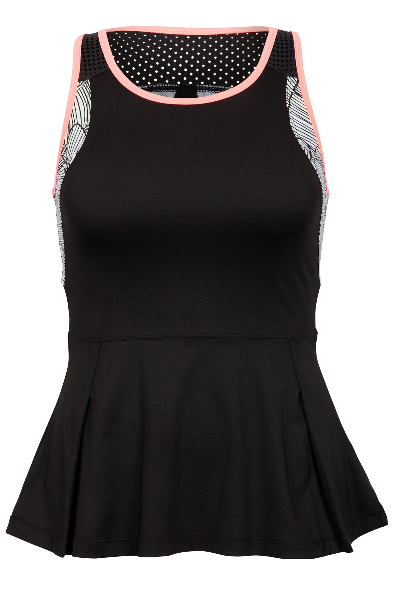 - Racerback with mesh detail and flattering pattern detail